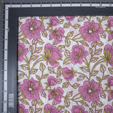Pink Floral Hand Blocked Pure Cotton Light weighted Fabric for Kurti