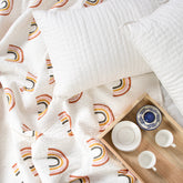 Designer Rainbow Block Printed Pure Cotton Machine Quilts including Pillows